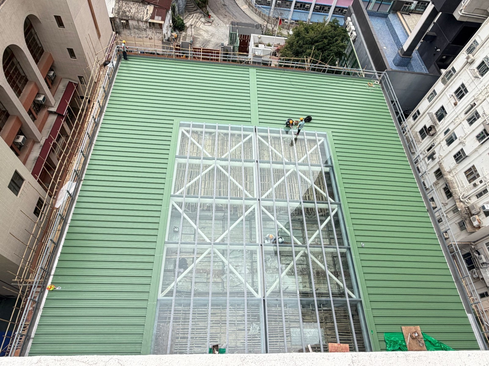 目前上蓋的支架已經全部鋪設完成,接下來將進行上蓋及透光玻璃的鋪設工作。工程進度理想,相信不久的將來,同學們就便能在上蓋下打籃球了。